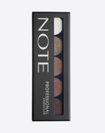 Each Note Professional Eyeshadow Palette features five complementary shades in matte, satin, velvety, glitter, and shiny finishes—perfect for creating both natural and sophisticated looks. The smooth, buildable formula delivers rich color payoff and is enriched with Vitamin E to help prevent moisture loss and dryness. Suitable for wet or dry use, it includes a built-in mirror and two double-ended brushes. Paraben-free, dermatologically tested, and safe for sensitive eyes and contact lens wearers. Size: 10 g (2 g x 5).